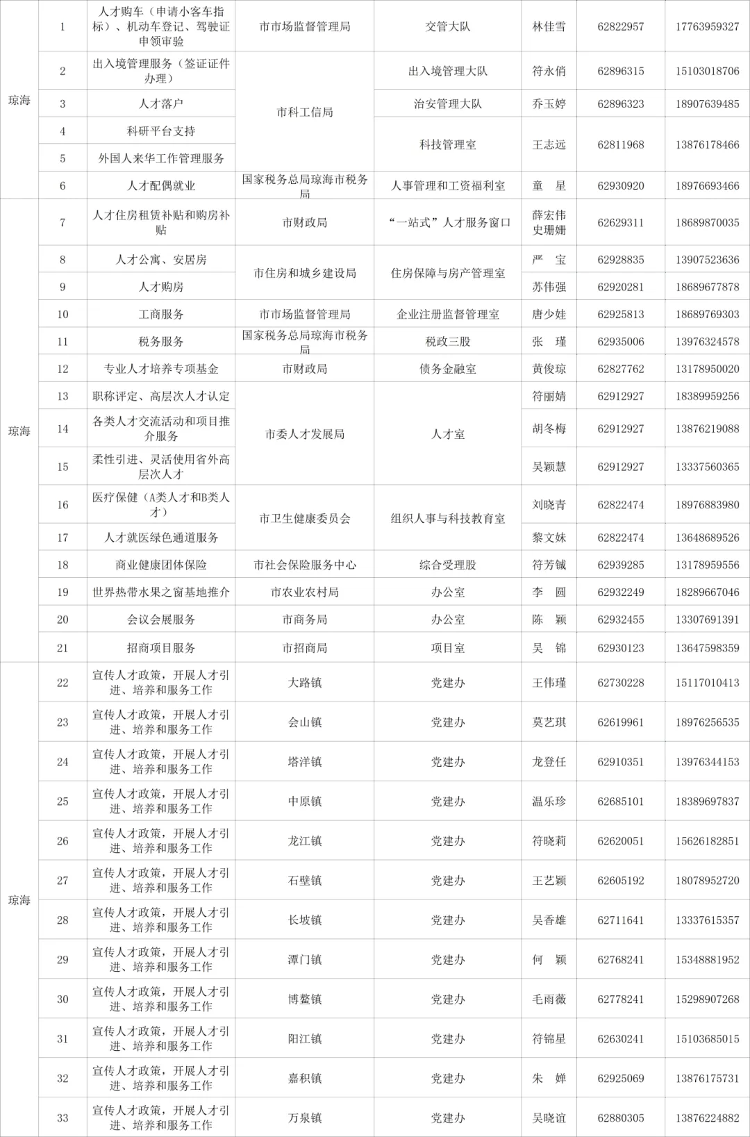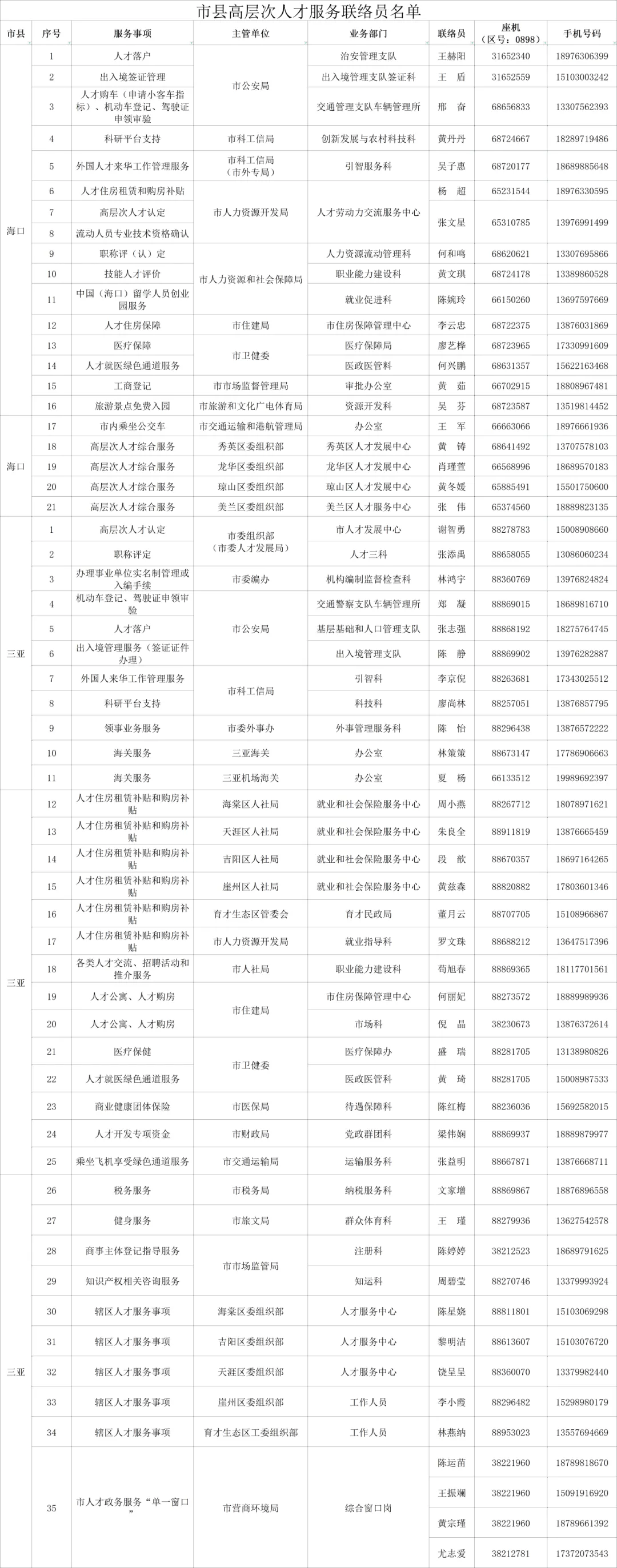 根据《海南省高层次人才服务专员管理办法》(琼人才局通〔2020〕25号)要求,现将2026年度海南省高层次人才服务联络员名单公布如下(见附件)。