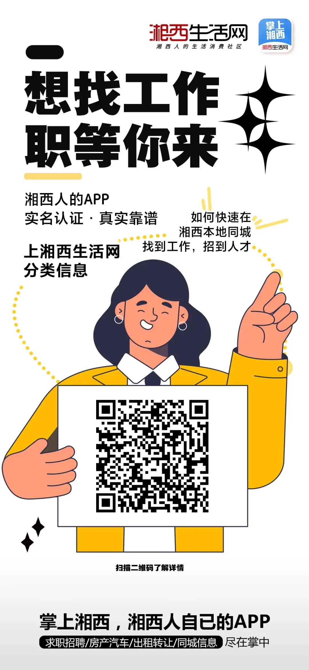 湘西生活网分类信息是集人才、求职、招聘、兼职、出租、出售、门面、商铺、二手房、二手车、家教、二手物品等生活便民信息为一体的信息共享发布平台,依托湘西生活网20年的品牌,为湘西地区的市民提供生活信息咨询类的服务。
