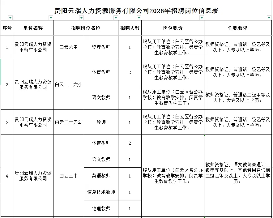 附件:附件1:贵阳云瑞人力资源服务有限公司2026年招聘岗位信息表.xlsx