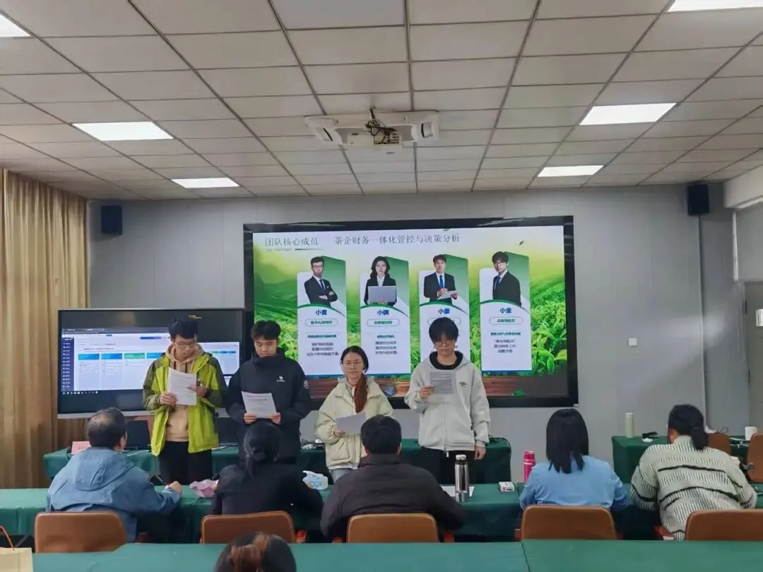 在听取一队的汇报和观看演示后,指导团队进行了深入质询与点评。首先肯定了项目选题的价值:“选择茶产业这个具有中国特色的传统行业进行数字化赋能,立意很好,体现了服务地方经济、推动产业升级的意识。”同时指出,需要进一步挖掘茶企区别于其他制造企业的独特财务管控需求,使解决方案更具不可替代性。