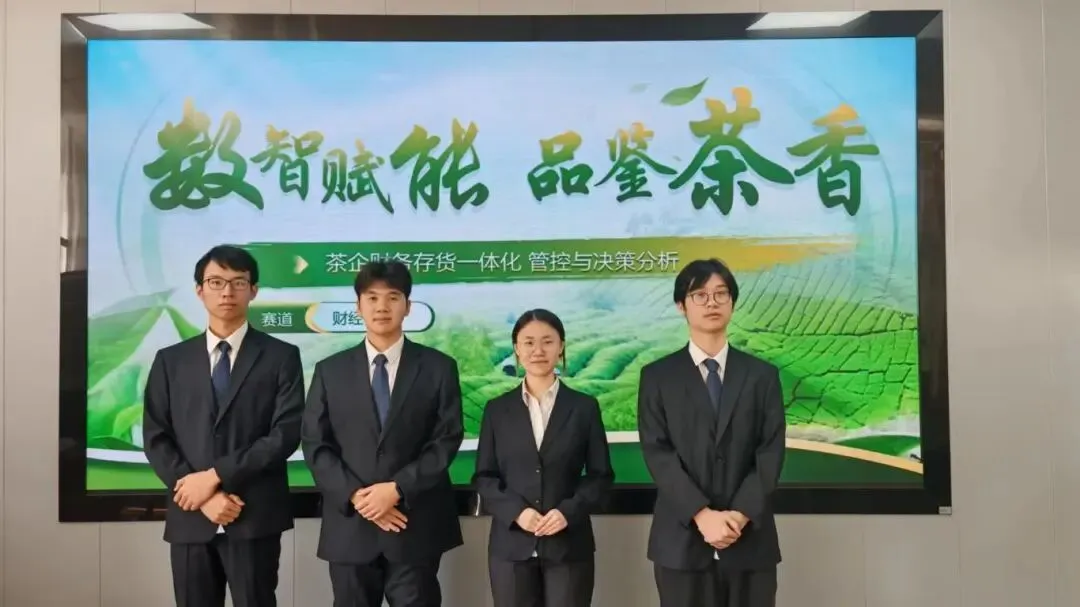 首先登场的是第一支参赛队伍。他们的项目聚焦于中国传统特色产业——茶企,针对当前众多茶企在加工、销售、仓储等多环节存在的财务数据孤岛、管控粗放、成本核算不精准等痛点,设计开发了一套“茶企财务一体化智能管控”项目一。
