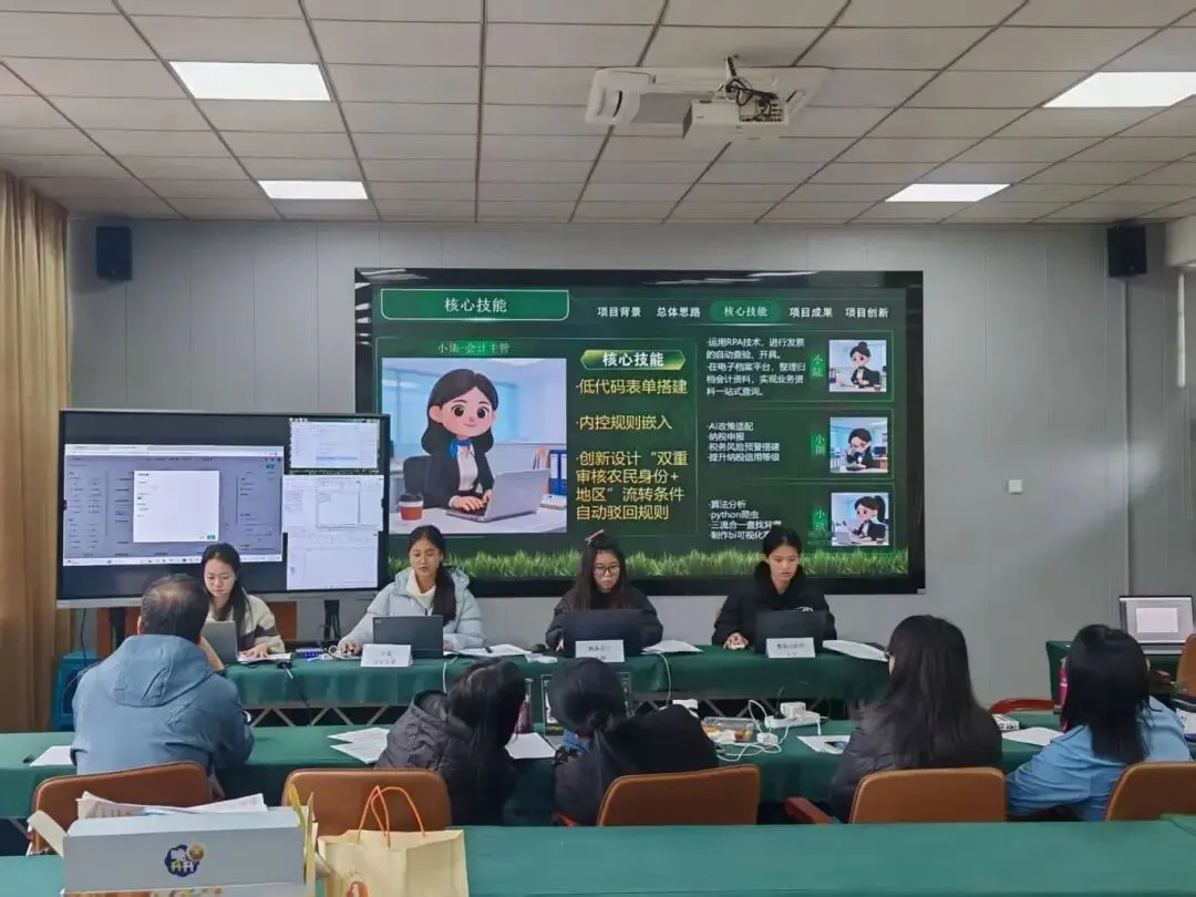 项目展示从行业背景分析入手,清晰勾勒了茶产业数字化转型的迫切需求。团队成员详细阐述了平台的核心架构:集成ERP系统获取生产与供应链信息,利用自动化处理日常财务流程,并基于大数据分析模型,为成本控制、库存管理、销售预测等提供智能决策支持。演示环节,团队模拟展示了从鲜叶收购到成品茶销售的全链条财务数据自动归集、成本实时核算、风险预警提示等关键功能。