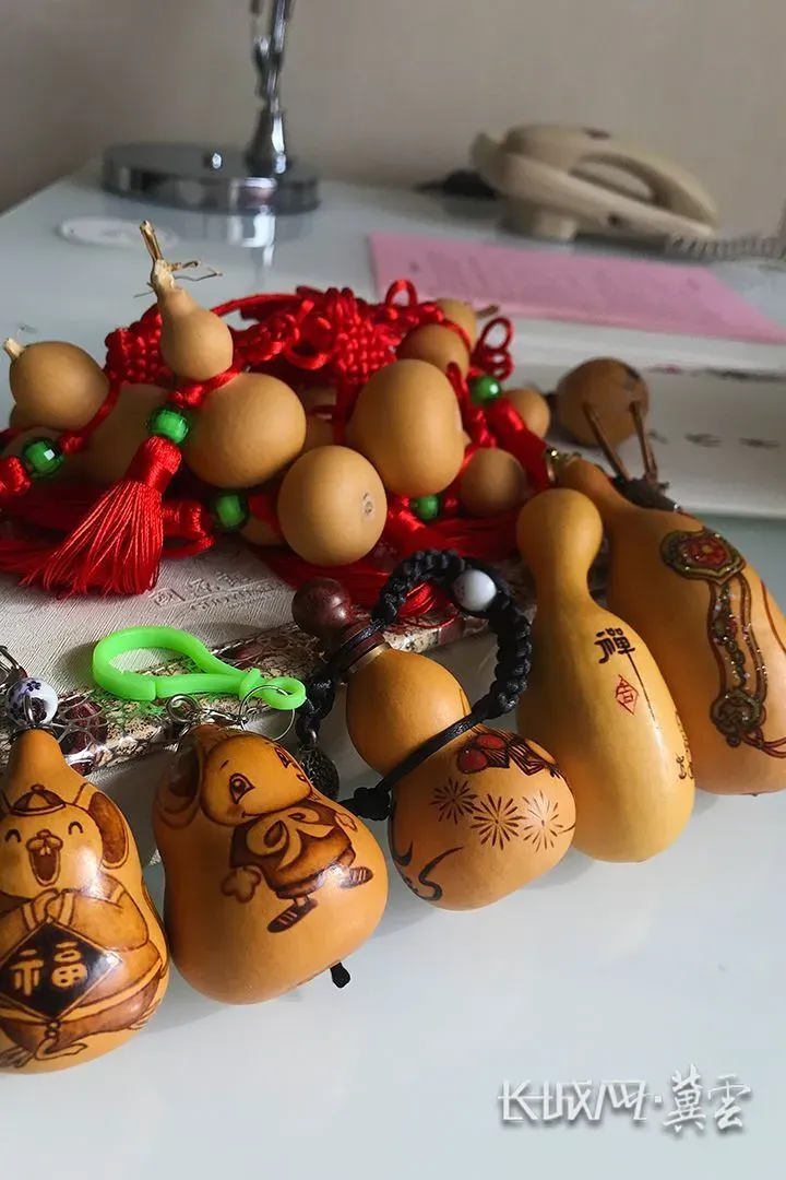 早在2018年,缴艳霞就成立了自己的工作室,之后又建成了葫芦工艺品加工厂,还开办了学习班,除了吸引附近村庄心灵手巧的姐妹们前来学习,还通过社交平台吸引了上千名学员,让更多的人学习了解这项非遗技艺——葫芦烙画。