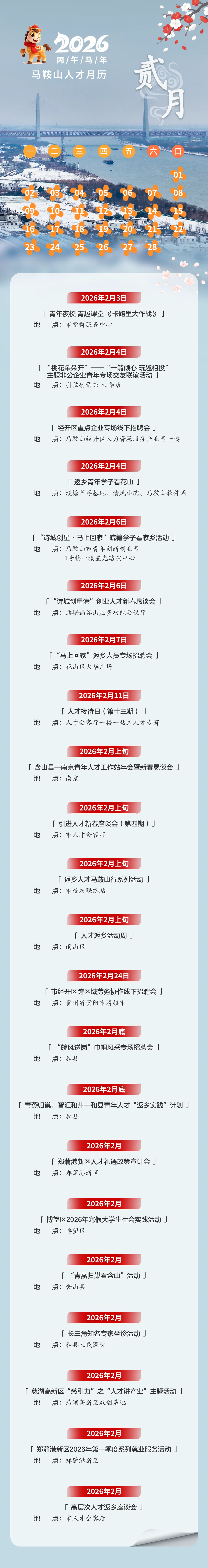 马鞍山人才服务二月历