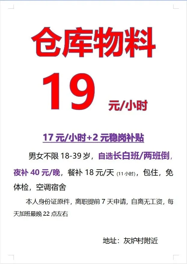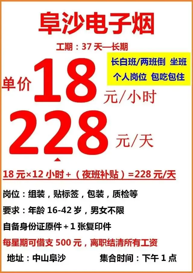 工作要求:工期最少要做2个月以上,钉钉打卡,一周出勤6天左右,男女不限、18周岁以上