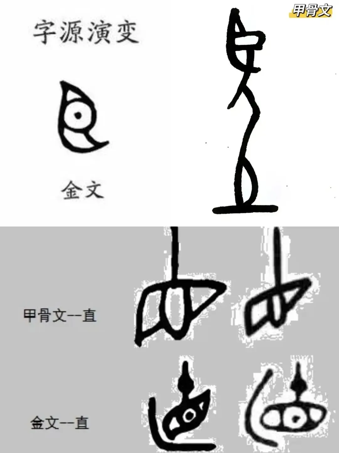 再根据甲骨文的臣、望、直,以及反应动物的头部可用眼睛字形来替代的习俗,可见在商周时期,头部确实可以用眼睛来替代。