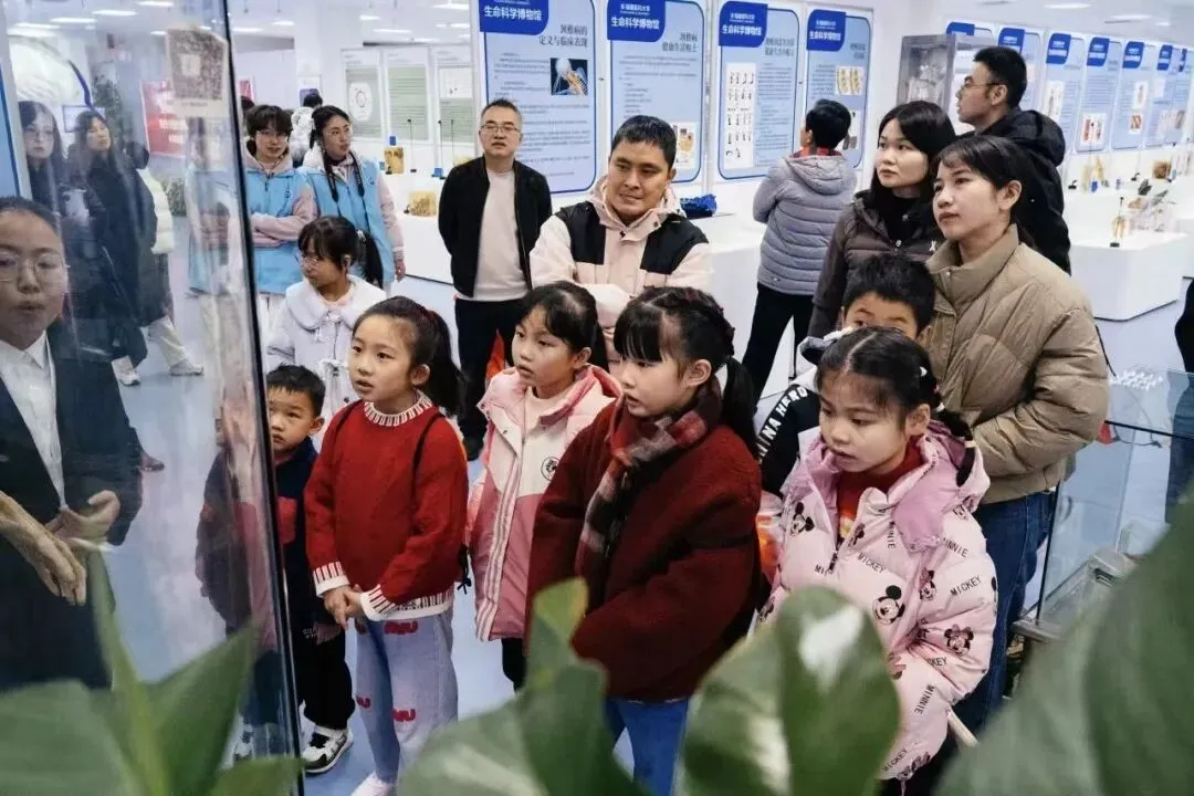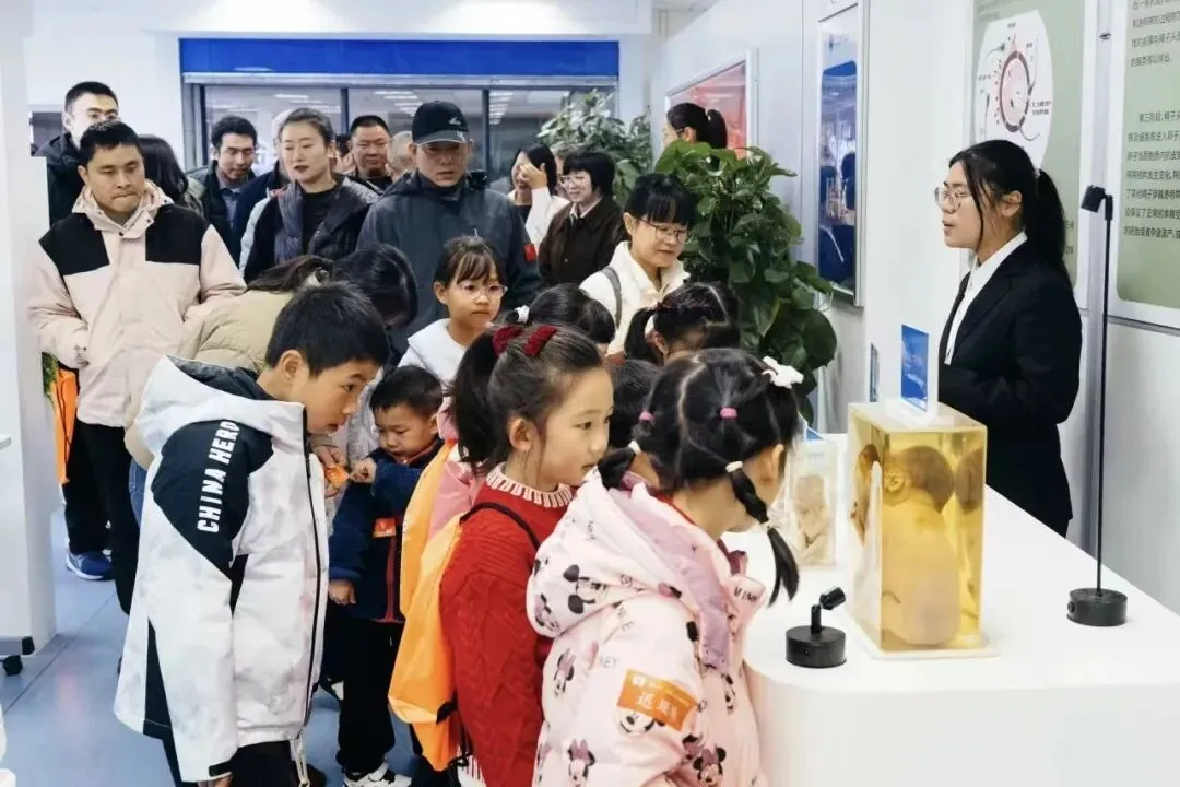 生命科学馆内陈列的胚胎发育模型、人体骨骼及器官标本等展品,迅速吸引了孩子们的目光。在志愿者生动的讲解中,大家认真观察、积极互动,逐步理解生命孕育与成长的奥秘。这场直观而深刻的探索之旅,不仅传授了人体科学知识,更在孩子们心中播下了敬畏生命、珍爱健康的种子。