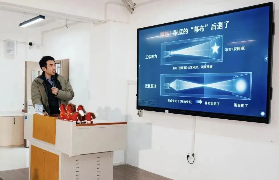 近视防控科普馆则通过眼球模型、视觉体验、误区解析等互动展示,激发孩子们探索眼睛奥秘的兴趣。第十批援藏干部人才、附属第二医院眼科叶文文主治医师带来一场生动实用的近视防控科普宣讲,从“为什么会近视” 到“日常护眼小妙招”,寄语孩子们用明眸眺望未来,如高原雄鹰般翱翔!