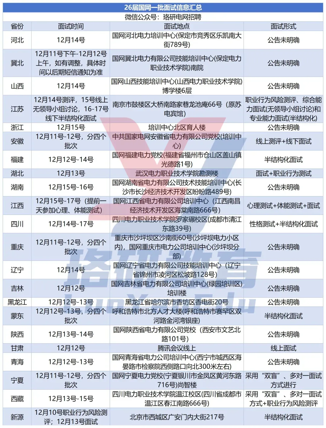2025年12月1日,大部分国网省公司和直属单位发布考试公告,确定资格审查、笔试、面试时间。