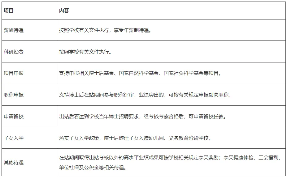 学校在师资队伍、科学研究、人才培养等方面取得的丰硕成果,将为师资博士后人才提供良好的发展平台,满足师资博士后开展高水平科研和教学工作需求。