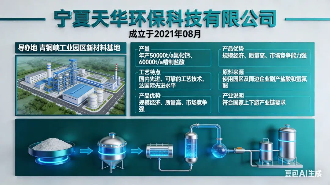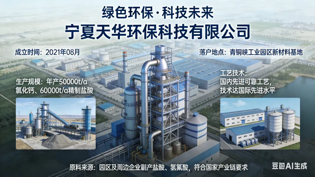 宁夏天华环保科技有限公司成立于2021年08月,落户于青铜峡工业园区新材料基地。公司建设年产50000t/a氯化钙、60000t/a精制盐酸。所建工艺生产装置采用国内先进、可靠的工艺技术,不仅技术上可达到国际上目前的先进技术,而且产品具有一定的规模经济,产品质量高,在国际国内的市场上有很强的竞争能力。本项目生产过程中使用到的主要原料盐酸和氢氟酸为园区内和周边城市企业所产生的副产,符合国家上下游产业链的要求。