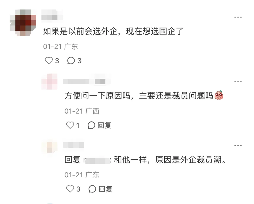 很多人表示,以前肯定选外企,但现在大环境变了,裁员潮直接把外企的吸引力砍掉了一大半。