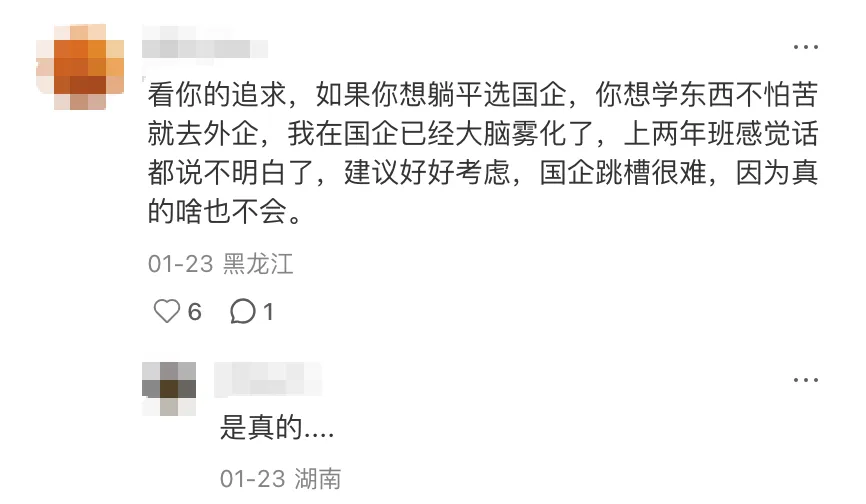 很多在国企待了两年的人反馈,感觉自己社交退化、思维僵化,连话都说不利索了。