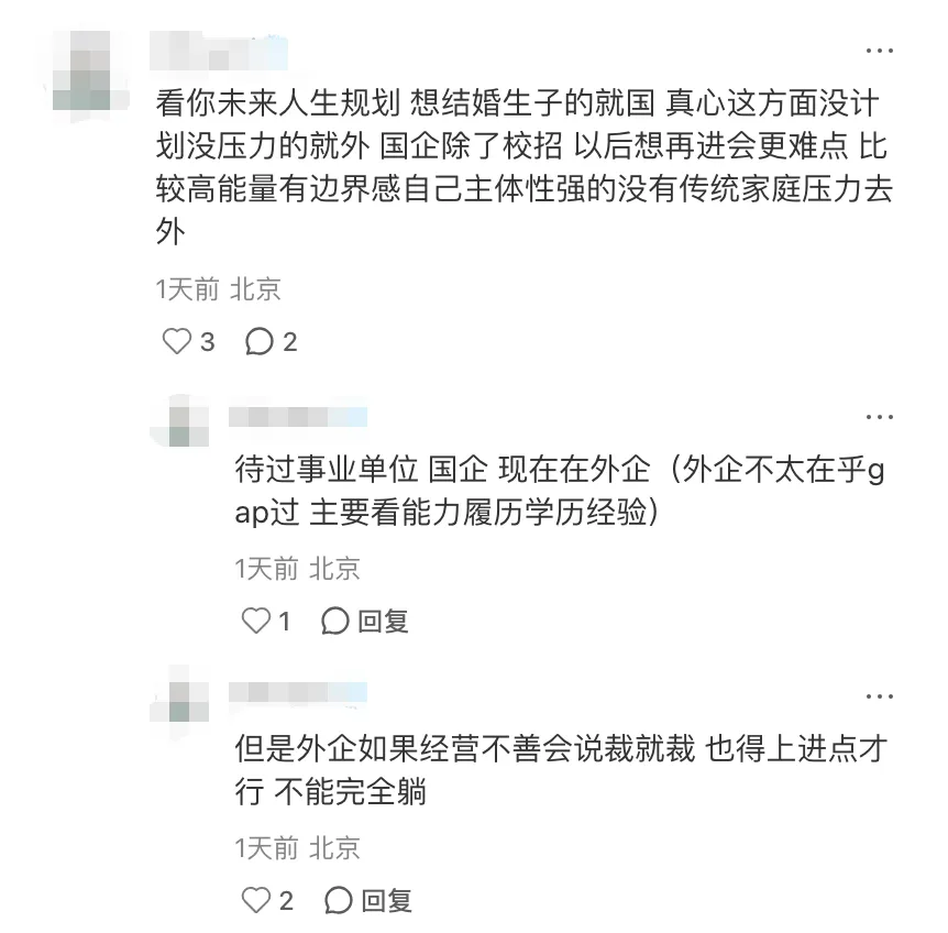 但如果你是个高能量、边界感极强,甚至有点讨厌传统家庭压力的人,外企那份相对简单的人际关系和对空窗年份的包容,可能更适合你。