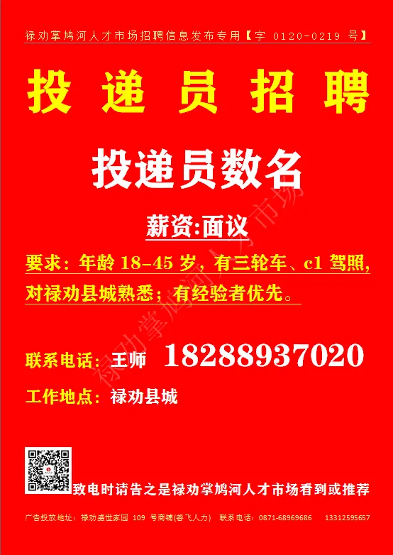 要求:年龄18-45岁,有三轮车、c1驾照,对禄劝县城熟悉;有经验者优先。