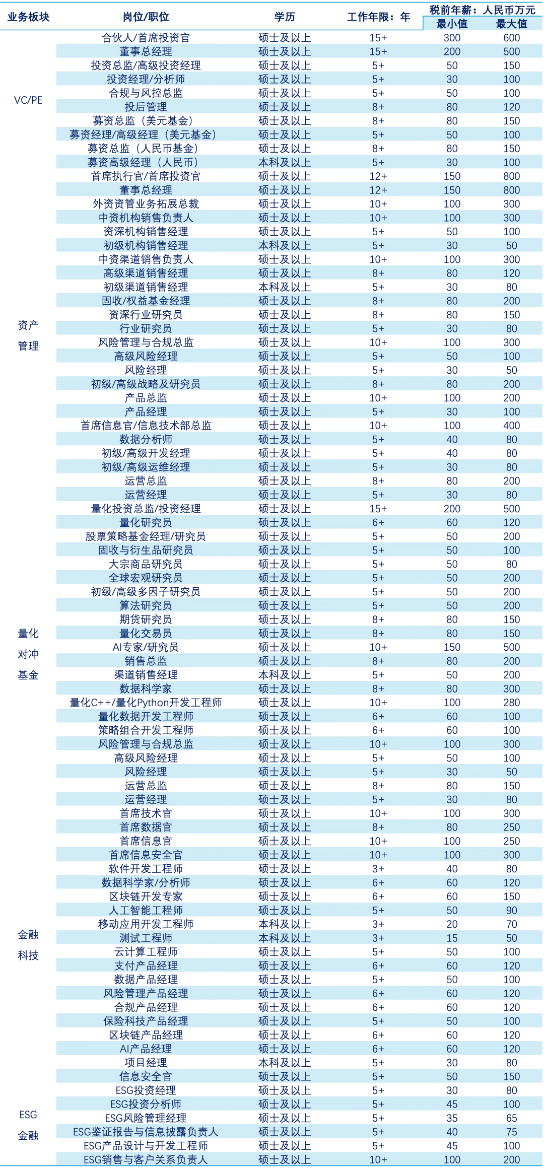 三是受到“硬科技、AI“等人工智能时代发展的影响,该领域的投资人才需求十分旺盛。