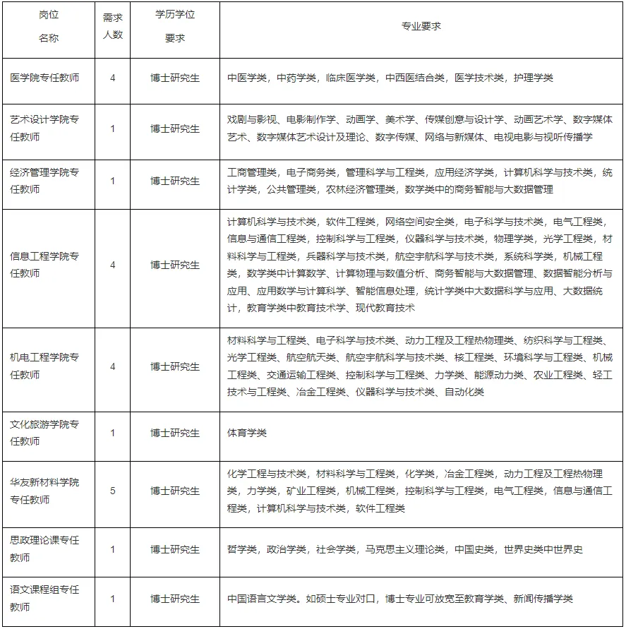 2.具备与招聘岗位要求相适应的学历学位、职称、专业、技能、工作经历等条件,具体要求见计划表。国(境)外学历专业和高校自设专业,经衢州职业技术学院认定为相关的,可接受报名应聘。