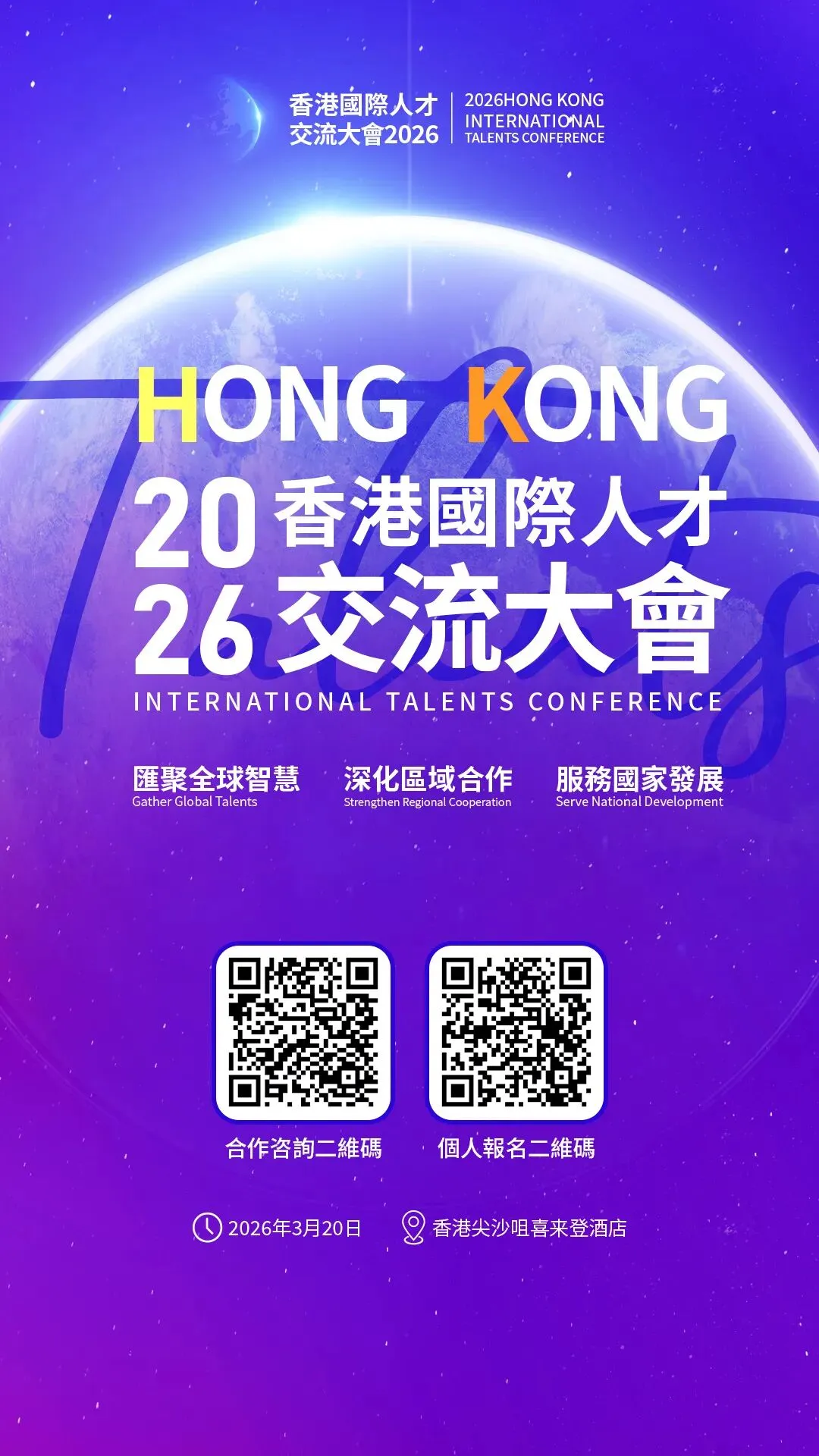 大家好,在閱讀正文前,請留意因應微信更改推送規則,請務必記得點擊文末右下角的『推薦』,並將協會公眾號『設為星標』,否則以後可能很難看到我們的精彩推送!「2026香港國際人才交流大會」將於3月20日(星期五)在香港舉辦。交流大會作為香港特區政府「全球人才高峰會周」的衛星活動,以「匯聚全球智慧,深化區域合作,服務國家發展」為主題,旨在積極貫徹二十大精神,配合國家人才戰略,落實《行政長官 2025 年施政報告》要求——「加強香港與內地合作,合力招攬海外人才」,更好融入和服務國家發展大局。