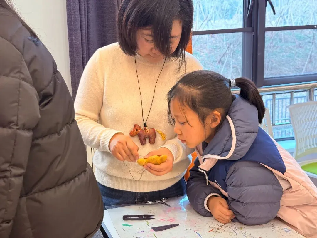 活动伊始,老师向大家展示了数件精美的布艺挂件,其中特别讲解了憨态可掬的小马挂饰,蕴含着“一马当先”的美好祝愿。随后,老师耐心介绍了如何用最传统的平针缝与回针缝技法,亲手缝制属于自己的布艺挂件。