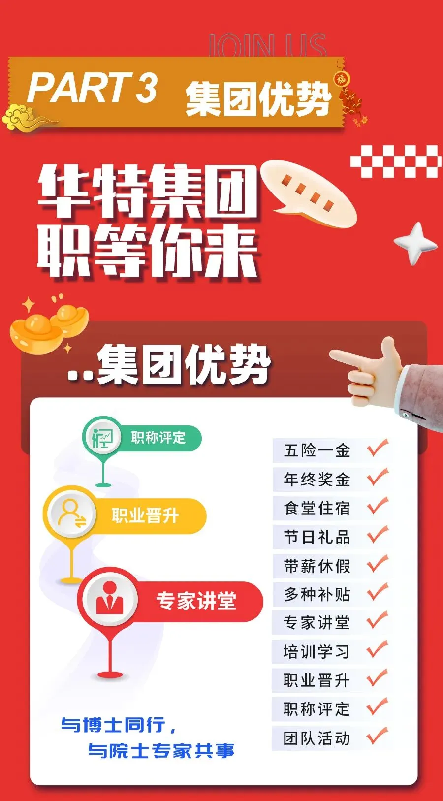 五险一金,提供食宿!华特集团最新人才需求招聘发布