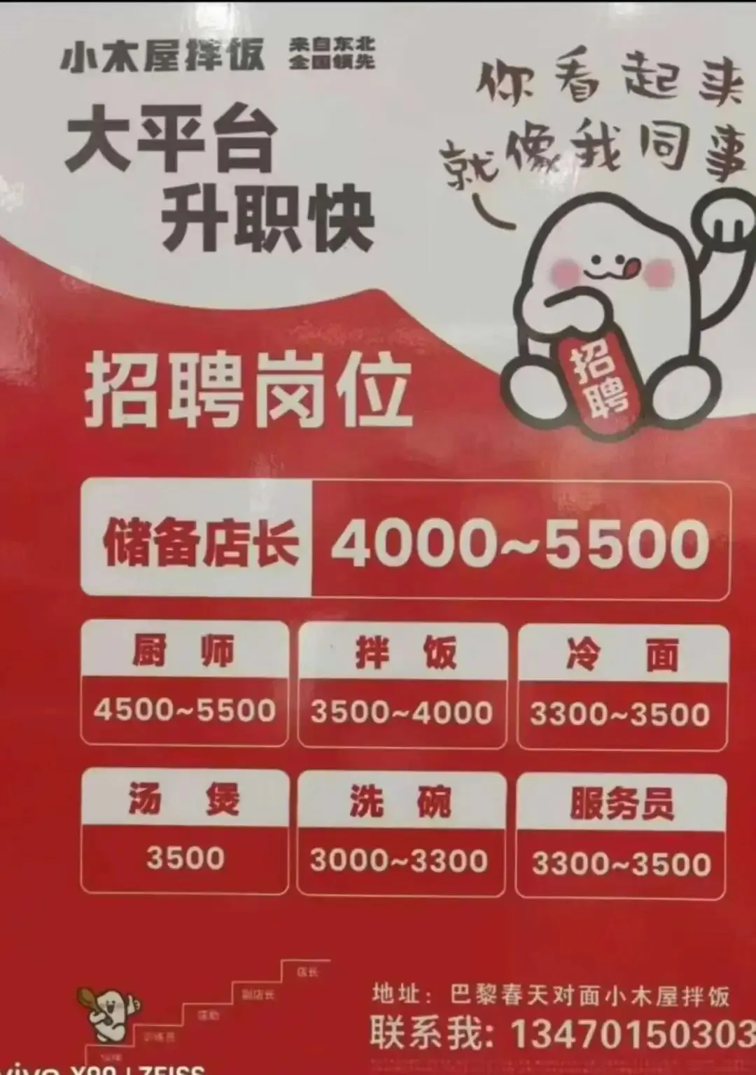 •薪资福利:月薪2100元,享有餐补