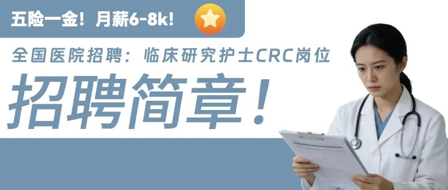 招聘全国临床研究护士CRC岗位(驻院直属临床试验协调方向crc)五险一金,带薪年假,绩效奖金等各种福利!