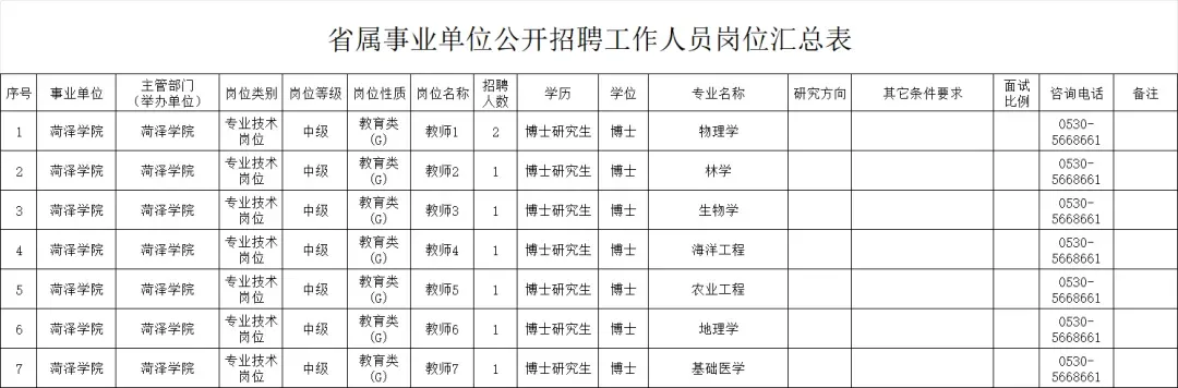 根据《中共山东省委组织部 山东省人力资源和社会保障厅关于印发2026年度省属事业单位公开招聘工作实施方案的通知》(鲁人社发〔2025〕12号)要求,结合工作需要,我校拟面向社会公开招聘专业技术岗位人员8人。具体岗位及条件详见《省属事业单位公开招聘工作人员岗位汇总表》(附件)。