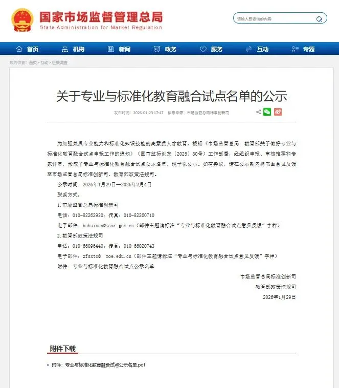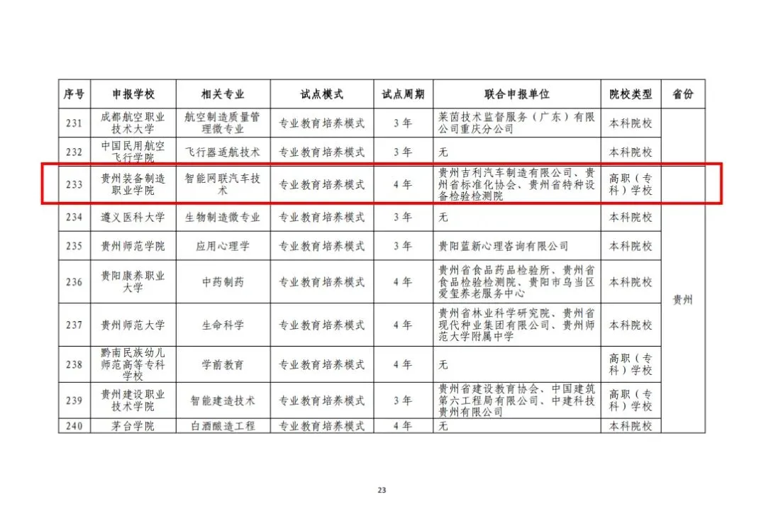近日,国家市场监管总局、教育部联合发布《专业与标准化教育融合试点公示名单》,我校汽车工程系智能网联汽车技术专业凭借鲜明的专业特色、扎实的教学基础及深度的产教融合模式,成功获批全国专业与标准化教育融合试点(专业教育培养模式)。本次试点申报工作由学校教务处统筹,汽车工程系主持,联合贵州吉利汽车制造有限公司、贵州省标准化协会、贵州省特种设备检验检测院三方共同推进。