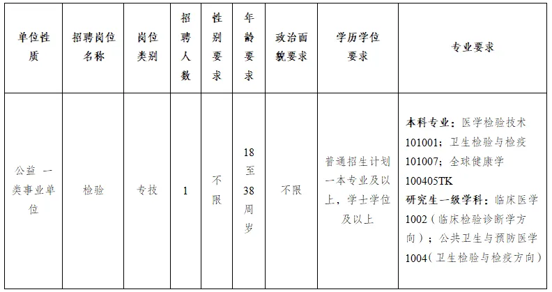 公开考核招聘紧缺专业学科优秀人才1名,具体招聘岗位及招聘条件如下: