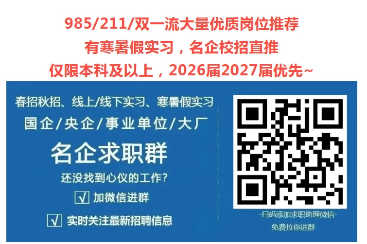 3.以上招聘信息由用人单位提供或来源于官网,如有误,请联系我们修改或下架。