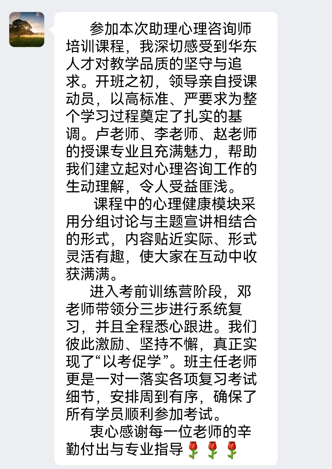 2026年2月1日,中国心理学会组织的心理咨询师水平评价首次全国试点考试顺利举行。华东人才心理教育的学员以饱满的热情和专业的准备,积极赴考,并在考试中取得了优异成绩,首考通过率高达90%,远超行业预期水平。