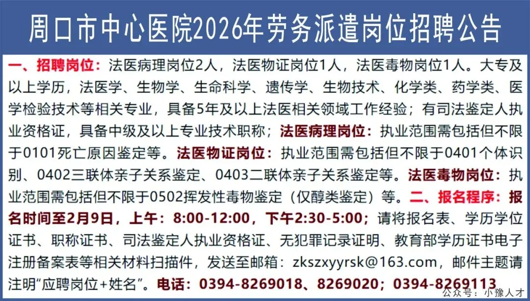 >周口市中心医院招聘工作人员【至2.9】