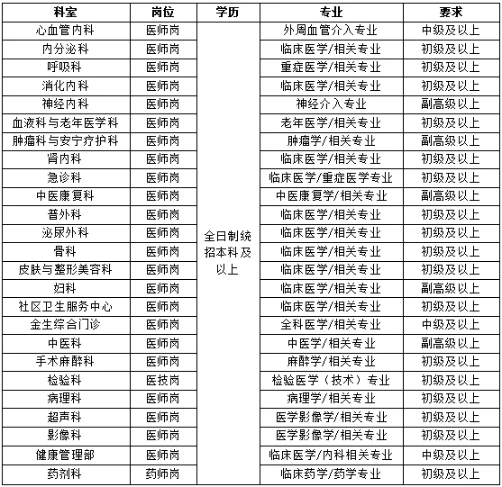 根据医院发展需要,面向社会公开招聘优秀人才,期待您的加入!