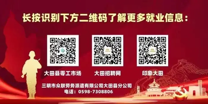 来源:大田县退役军人事务局、大田县零工市场、中国海峡人才网