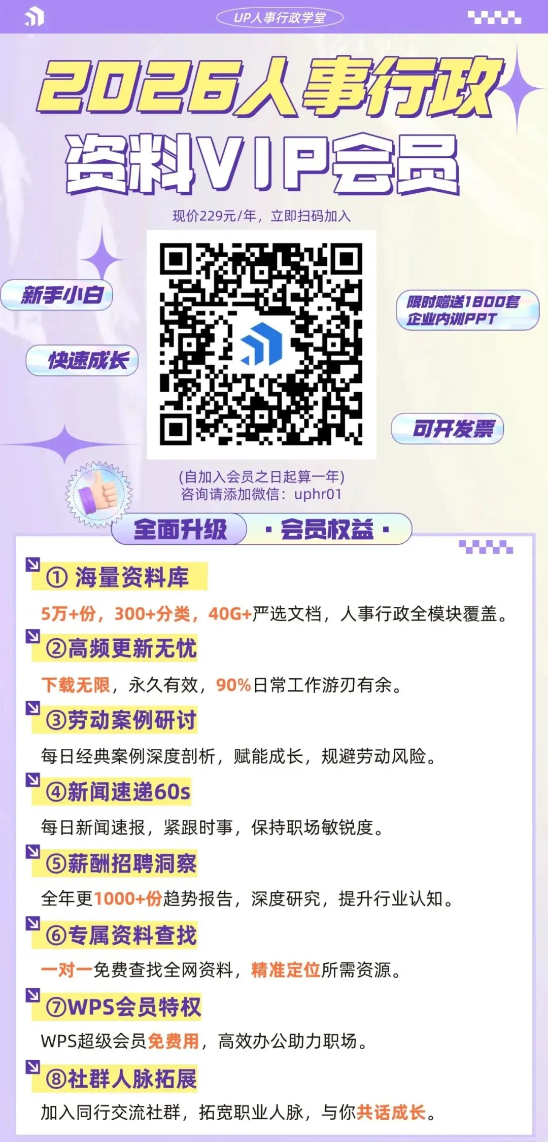 2、如不便分享,邀请您加入会员,一次获取全部人资行政资料,随用随取,全年不断更新中……