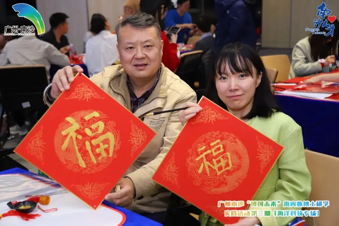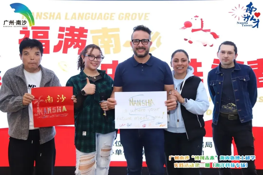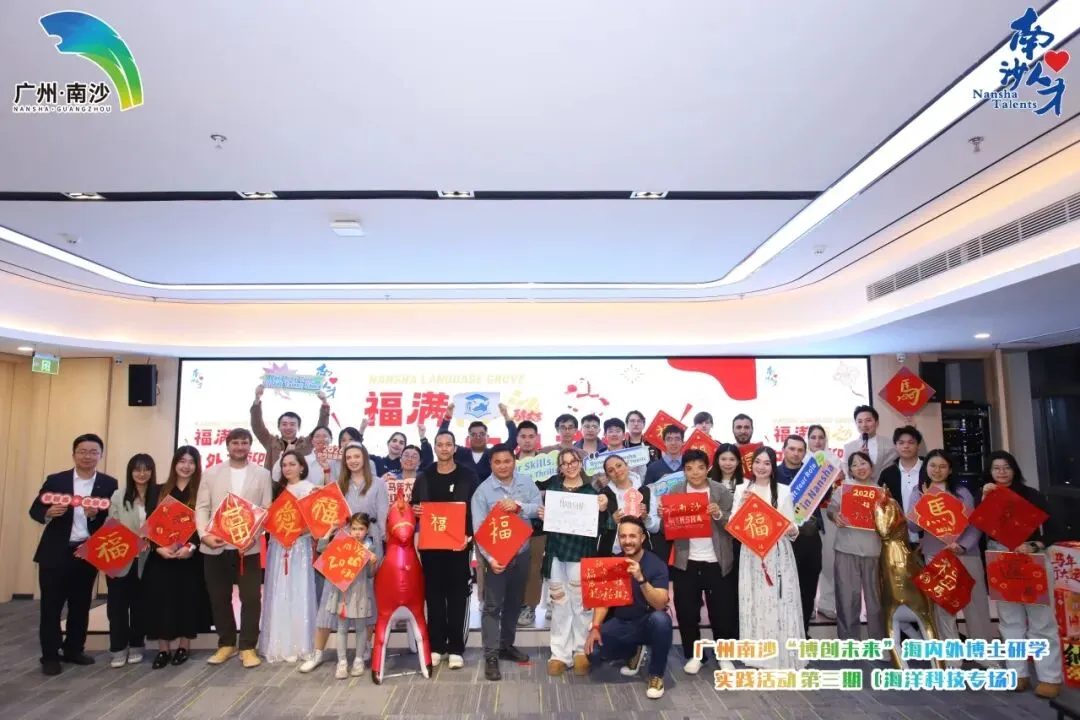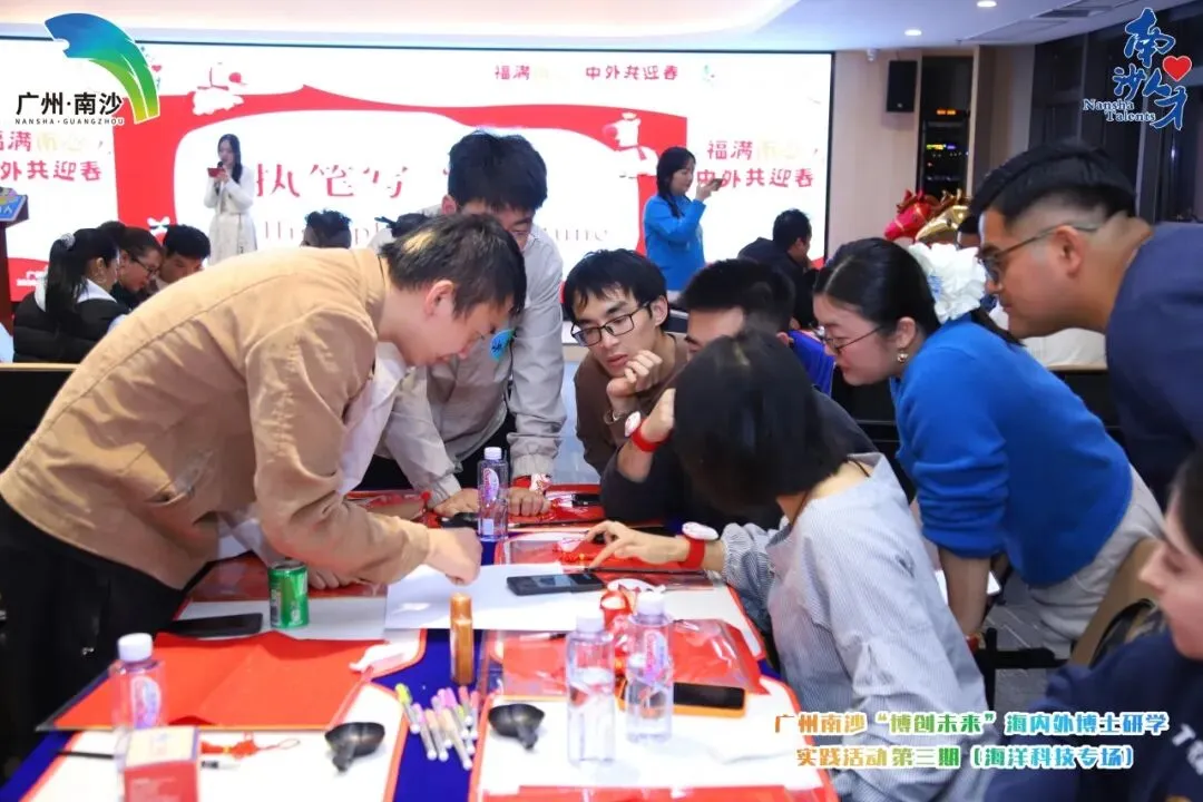 欢声笑语间,现场氛围从热闹的欢聚转向了思想的深度碰撞,LOGO共创工作坊成为整场活动的高光时刻,也成了中外智慧交融的“思想会客厅”。围绕“广州南沙‘博创未来’海内外研学活动”,“博士+外籍”搭档围坐研讨,各组或构思图案内涵,或打磨中英双语口号,每个人都沉浸在共创的热情中。