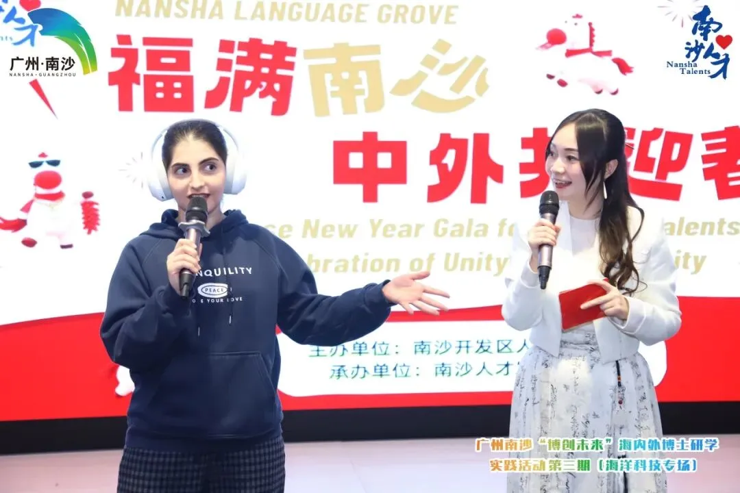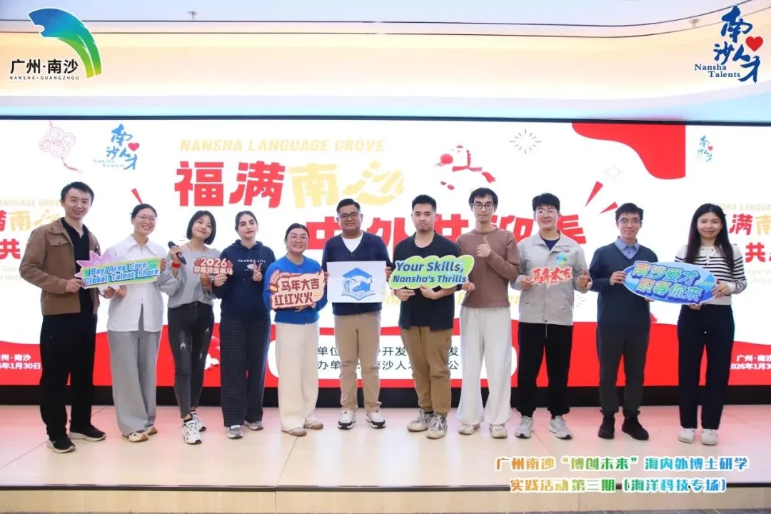 登台分享环节,各组的设计理念惊艳全场:有的小组以“浪花托举博士帽” 为主体,寓意南沙以开放姿态汇聚全球英才;有的小组将南沙地标凤凰大桥融入图案,搭配中英双语口号“博创南沙,智联世界(Innovate in Nansha, Connect the Globe)”;还有的小组以“科创之芽”为灵感,象征青年人才的创新活力;更有小组巧融博士帽、帆船与书籍元素,诠释博学致远、扬帆远航的深层内涵,将 “Talent is a key of future to Nansha”的核心理念凝入设计,彰显南沙以人才为钥、解锁未来发展新局的坚定追求。