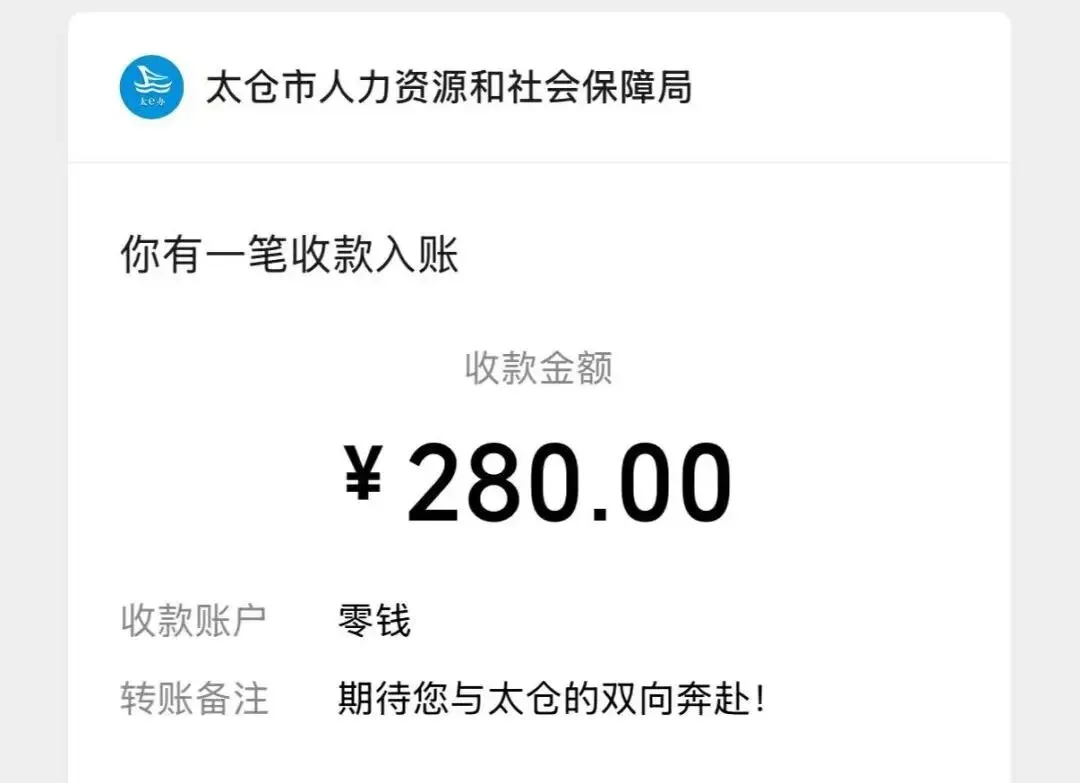 ✅ 280元“城市体验金”直接打入申请人微信钱包