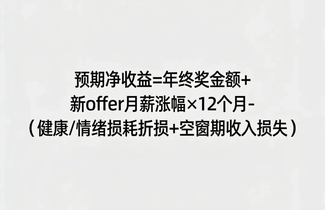 跳槽的本质是权衡收益与成本,这个公式能帮你量化判断,避免情绪化决策: