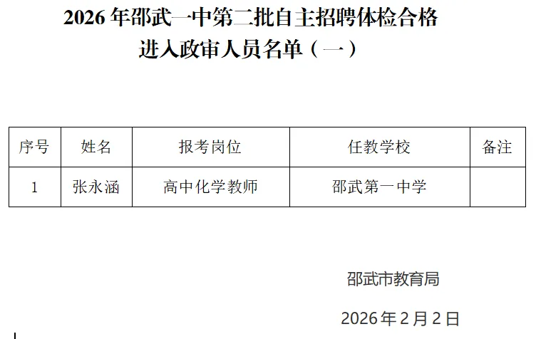 2026年邵武一中第二批自主招聘体检合格进入政审人员名单(一)