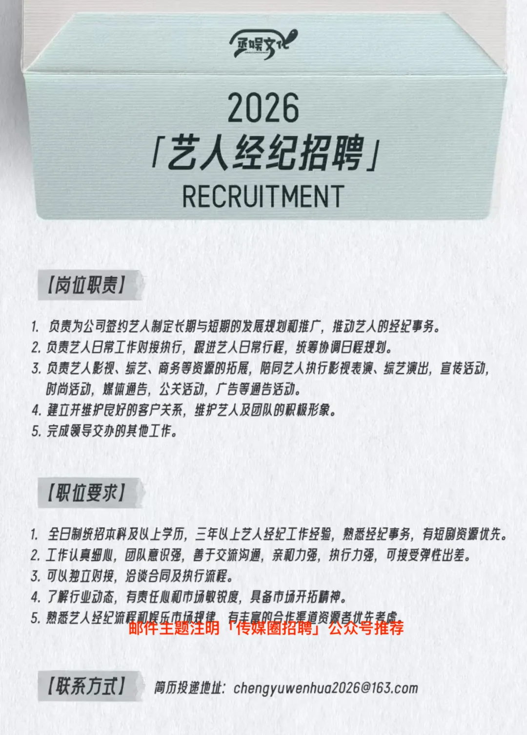 魏哲鸣经纪公司招聘公告!