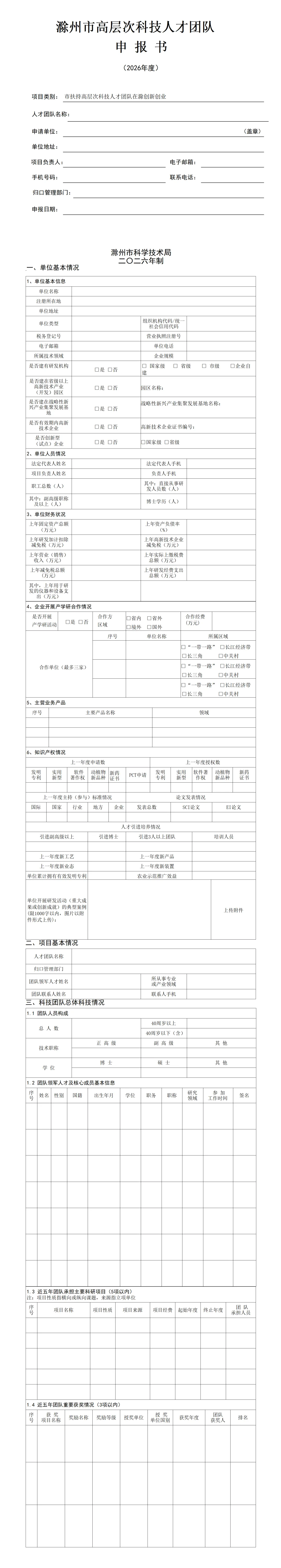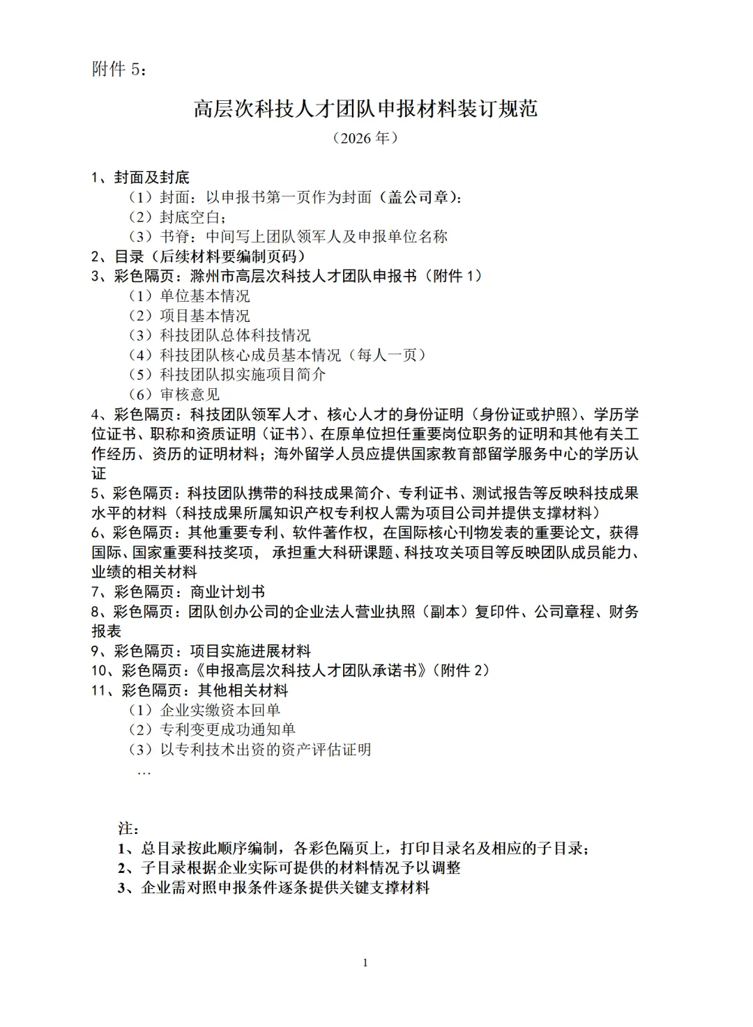 2.科技团队提交的材料必须真实、准确、完整,推荐部门要严格审核把关。具体申报材料详见《滁州市高层次科技人才团队申报书》(附件2)尾页,装订要求详见(附件6)。