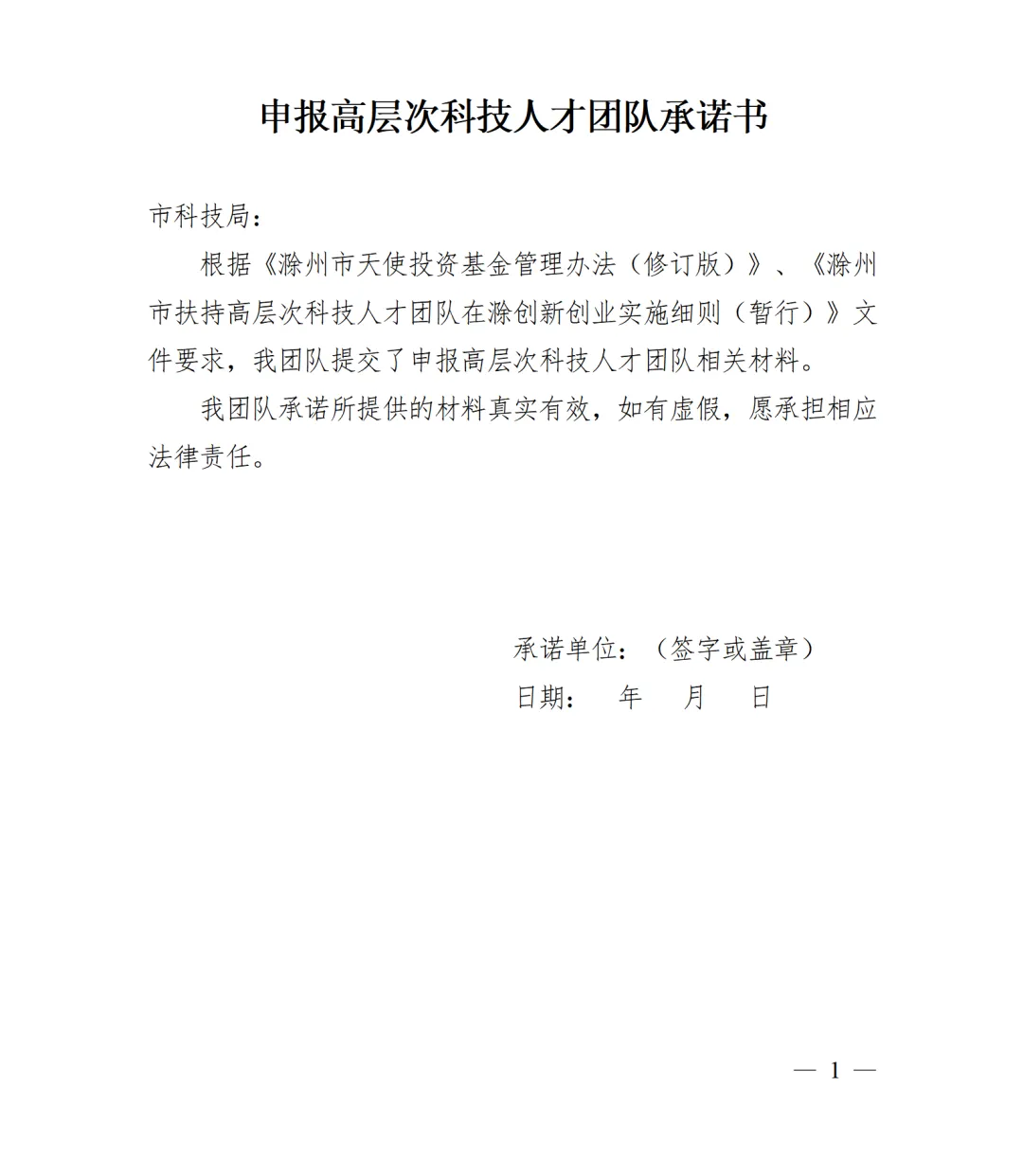4.滁州市扶持高层次科技人才团队在滁创新创业项目推荐函.doc