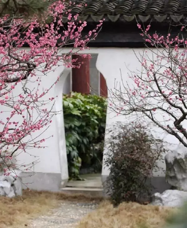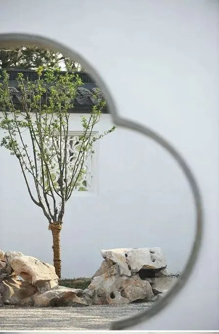 花草树木抱合而成的景框将庭院里的风景框于其中,透过若隐若现的花草树木,目之所及,皆是一种美。