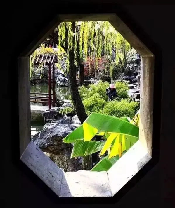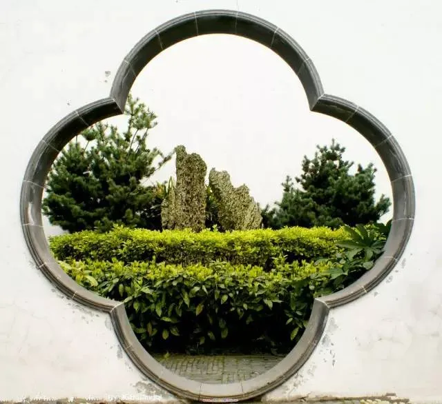 框景的妙处莫过于通过一扇窗户截取一段风景,将园林得以无限的扩展,让想象可以自由的延伸。圆形、菱形、扇形、梅形等众多窗的形式将无限的风光以最佳的形状勾勒出来,通过不同造型的剪裁和强调,构成意境绵延的精美画卷。