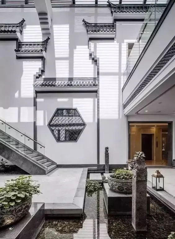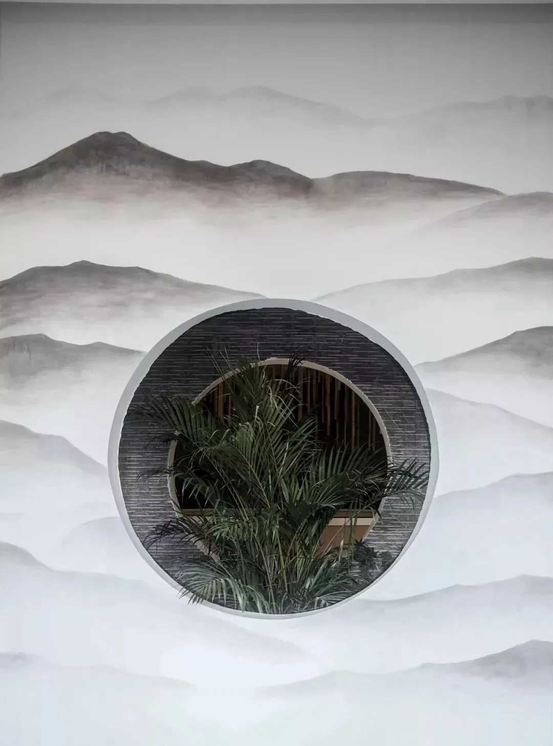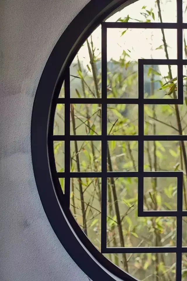 中式圆窗被运用于现代建筑里,浓浓的中式风背后,圆窗圈出一幅幅圆形的画面,是风景,更是意境。