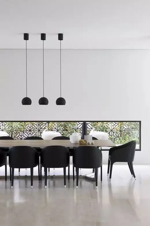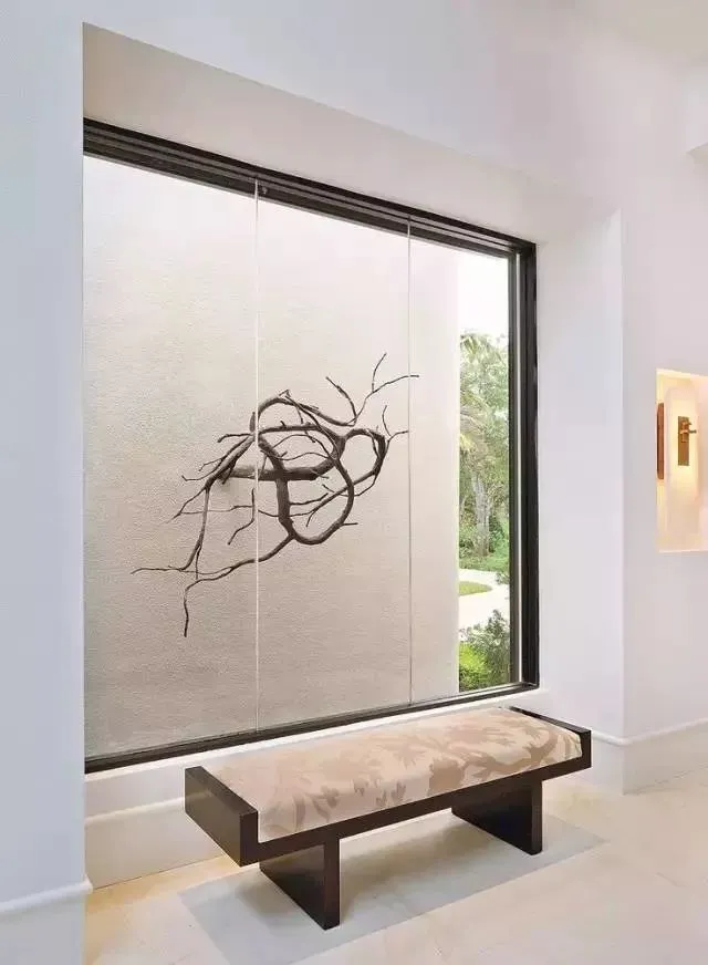 这是现代室内框景常用的设计手法,直线的现代窗格,将自然的灵性纳入生活空间,连通室内室外。既是一种建筑的表现手法,也蕴含了诗人的动人情致。