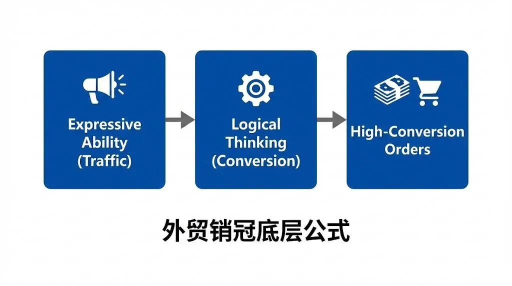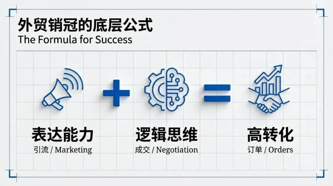 底层公式:表达能力(引流/Marketing)+逻辑思维(成交/Negotiation)= 高转化订单 。