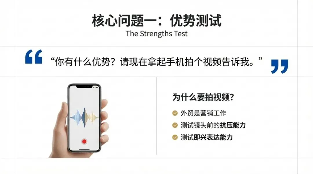 提问:“你有什么优势?请现在拿起手机拍个视频告诉我。”