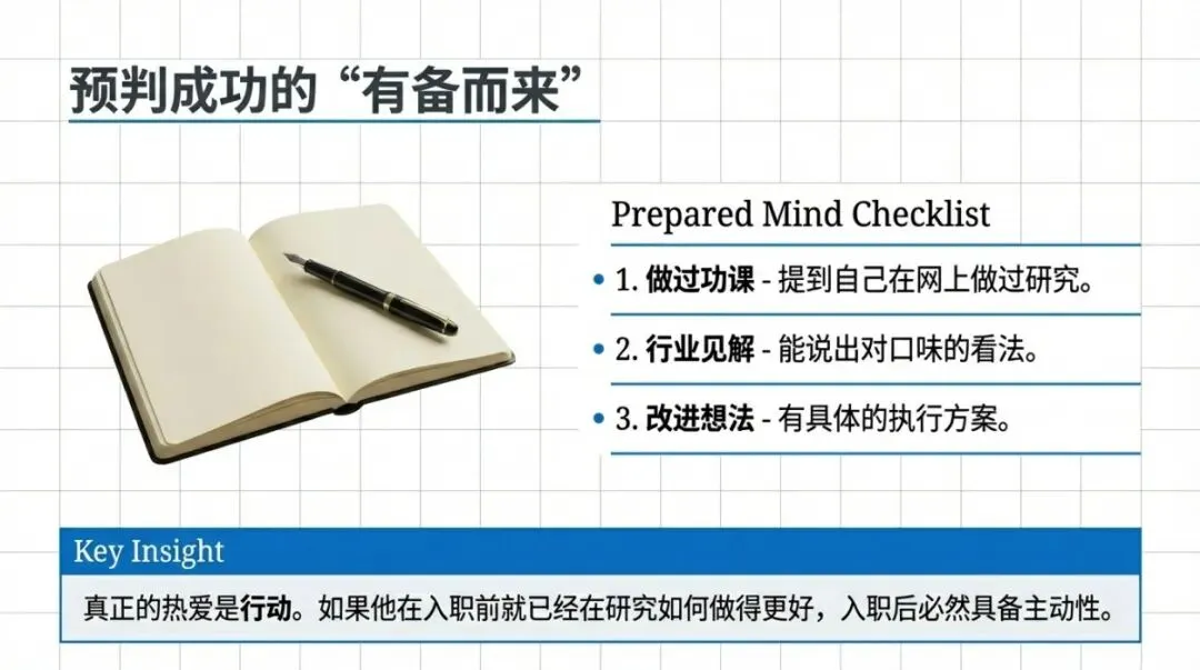预判成功:真正具备主动性的人会提前做功课,能提出具体的改进想法和执行方案 。